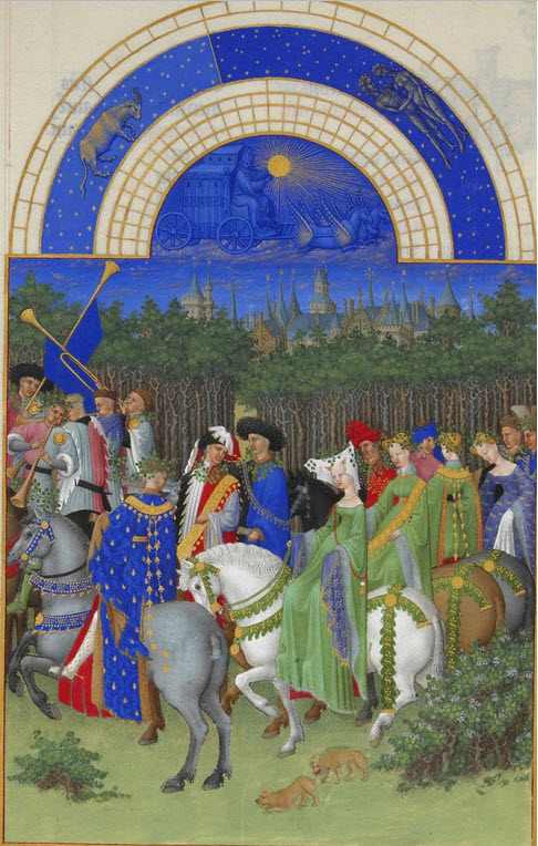 The Très Riches Heures du Duc de Berry or simply the Très Riches Heures (The Very Rich Hours of the Duke of Berry) is a richly decorated Book of Hours (containing prayers to be said by the lay faithful at each of the canonical hours of the day) commissioned by John, Duke of Berry, around 1410. More about them here:
